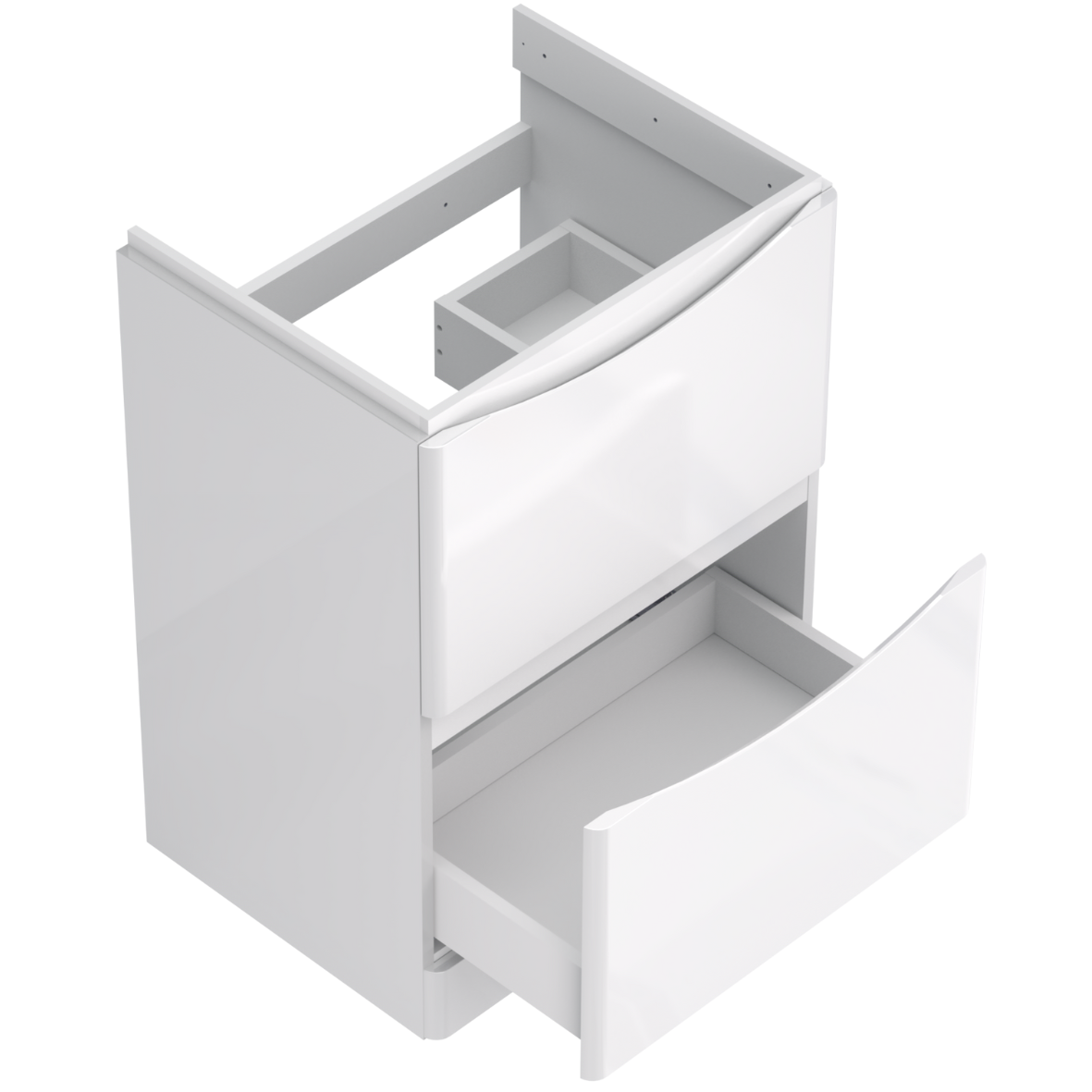 Szafka łazienkowa idealna do montażu wielu różnych umywalek z kolekcji AUSTIN od producenta STRAMA cechuje się wysoką jakością i starannością wykonania. W myśl stylu minimalistycznego posiada lakierowane połyskujące na biało fronty, a zamiast klasycznych uchwytów ma frezowane krawędzie, ułatwiające otwieranie szuflad.