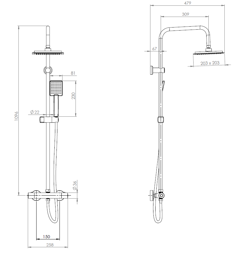 - deszczownica chromowana o wymiarach 203x203 mm;