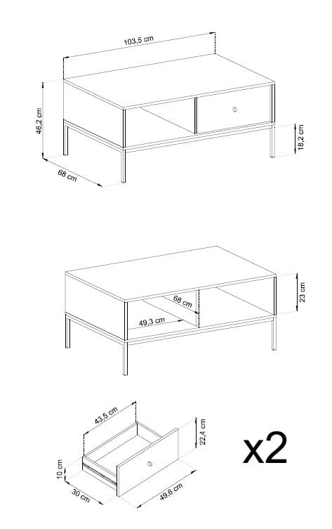 LUMI Stolik Kawowy o wymiarach 103,5 x 46,2 x 68 cm to idealne rozwiązanie do każdego salonu, łączące nowoczesny design z funkcjonalnością. Korpus wykonany z płyty laminowanej o grubości 16 mm zapewnia trwałość i łatwość w utrzymaniu czystości. Beżowy kolor blatu doskonale harmonizuje z czarnym metalowym stelażem, nadając całości elegancki wygląd. Stolik jest wystarczająco przestronny, aby pomieścić napoje, książki czy dekoracje, tworząc przytulną atmosferę.
