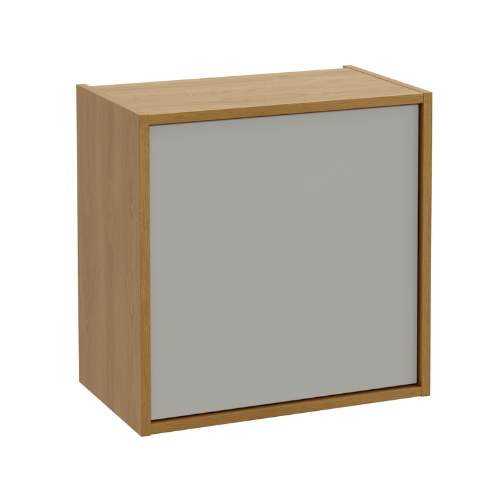 Szafka boczna wisząca ERIN o wymiarach 50x30 cm to funkcjonalne i estetyczne rozwiązanie do nowoczesnych wnętrz. Wykonana z solidnej płyty wiórowej 16 mm, wyróżnia się eleganckim wykończeniem: korpus w odcieniu dębu karmel oraz fronty w kryjącej bieli. Dzięki systemowi push to open oraz możliwości zmiany kierunku otwierania, ERIN zapewnia wygodę użytkowania i łatwo dopasowuje się do każdego wnętrza.